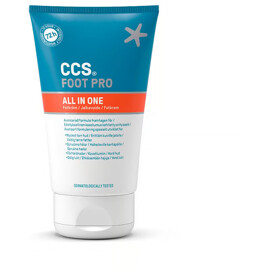 CCS FOOT PRO All-In-One er utviklet for føtter med svært tørr hud, hard hud og sprukne hæler. Formelen har fem funksjoner: gir intensiv fuktighet, mykgjør hard hud, fjerner døde hudceller, forbedrer hudens beskyttelsesbarriere og motvirker dårlig lukt. Kremen inneholder 10% karbamid for fuktbinding, havrekjerneolje som styrker hudbarrieren samt eukalyptusolje som motvirker dårlig lukt. Dermatologisk testet og vegansk.