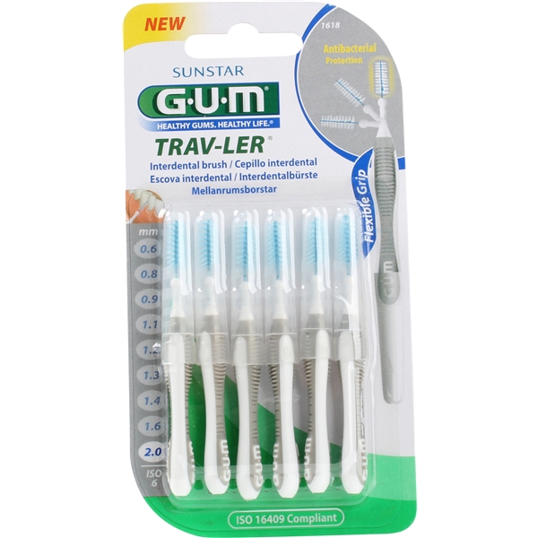 Portabel mellomrombørste for effektiv rengjøring mellom tennene. Børstehodet er behandlet med ett anti-bakterielt middel som sikrer att børsten er ren. Dessuten er hodet justerbart for å forenkle rengjøringen. Børsten finnes i fem ulike størrelser.