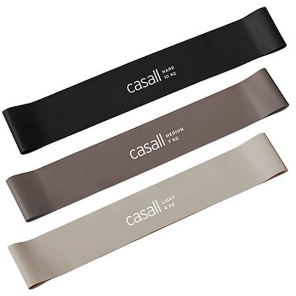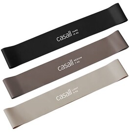 Casall gummibånd er et enkelt treningsredskap for motstandstrening, men med uendelige treningsmuligheter. Gummibåndene er perfekte for muskeltoning, stretching og eventuell rehabiliteringstrening. Passer utmerket når du spesifikt vil fokusere på rumpe- og bakside lårøvelser. Det er den absolutte favoritten blant profesjonelle trenere.