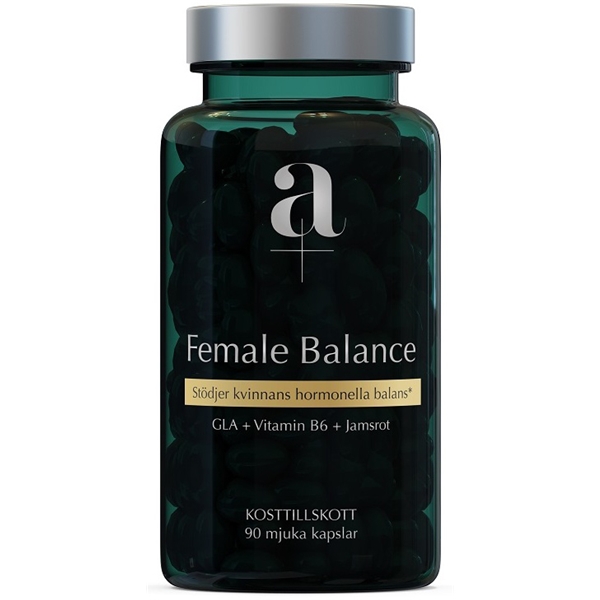 Female Balance inneholder nøye utvalgte næringsstoffer som støtter den kvinnelige hormonelle balansen. Det er et innovativt kosttilskudd med hele 12 aktive ingredienser, inkludert gamma-linolensyre (GLA) fra nattlysolje og solbærfrøolje, jamrot, lakrisrot og et kompleks av viktige B-vitaminer. GLA (gamma-linolensyre) tilhører gruppen av omega-6-fettsyrer. B6-vitamin bidrar blant annet til å regulere den hormonelle aktiviteten og redusere tretthet og utmattelse.