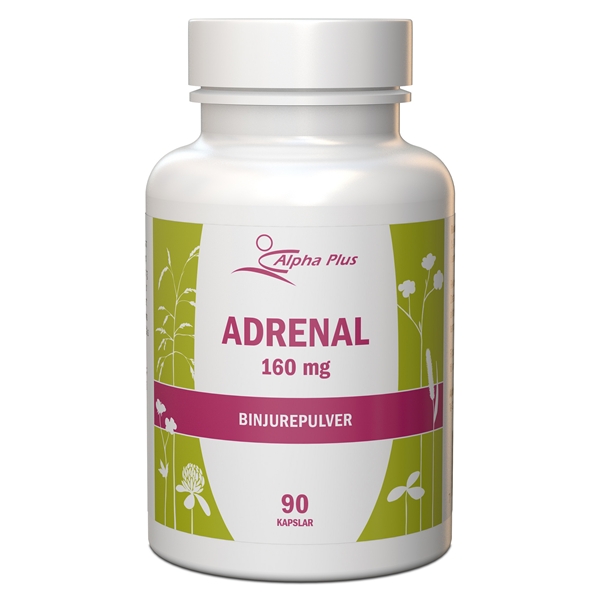 Adrenal inneholder frysetørret binyrepulver som utvinnes av hel, rå binyre fra storfe som fôres opp som frittgående beitedyr på New Zealand. De fôres opp uten veksthormoner og steroider på EU-lisensierte gårder.Binyrepulveret er frysetørret. Frysetørring er en sofistikert prosess der man eliminerer væske fra det rå binyrevevet. Dette gjøres for å sikre at så mye som mulig av den biologiske aktiviteten hos næringsstoffer, enzymer og andre aktive faktorer beholdes i det ferdige produktet.