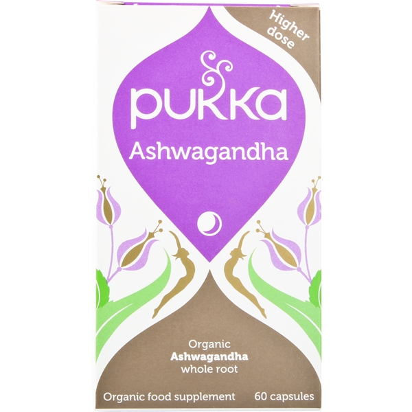 Økologisk sertifisert Ashwagandha. Pulverisert hel rot, vegetabilsk cellulosekapsel.
