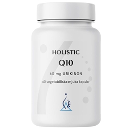 Holistic Q10 inneholder ekte naturlig japansk fermentert Q10.Q10 ligner på et vitamin og dannes naturlig i kroppen og som spiller en viktig rolle for å skape energi i cellenes kraftverk (mitokondriene). Q10 forekommer i organene som bruker mye energi, spesielt i hjertet. Med stigende alder synker nivåene av Q10 i kroppen.Holistic Q10 inneholder også C-vitamin, som bidrar til normalt stoffskifte. C-vitamin bidrar til å beskytte cellene mot oksidativt stress og til å minske trøtthet og utmattelse.