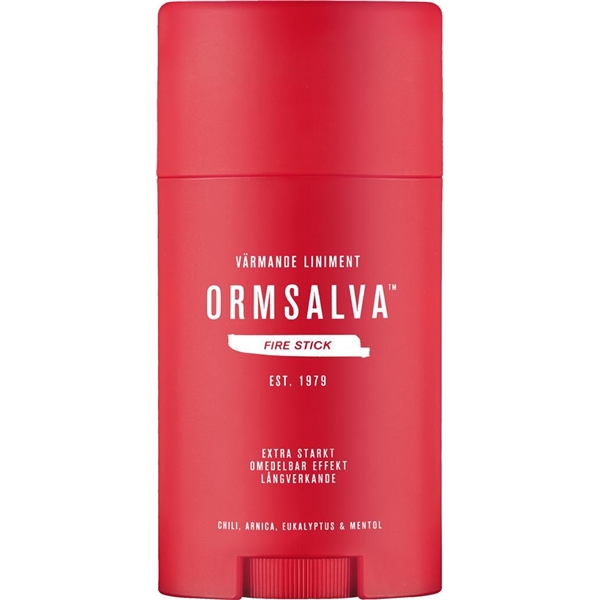 Ormsalva Fire Stick er et liniment som inneholder ekstra kraftige ingredienser og kan brukes forebyggende, ved behov og under trening. Er lett å stryke på uten flekker. Unngå øyekontakt. Bør ikke brukes på barn under 12 år.