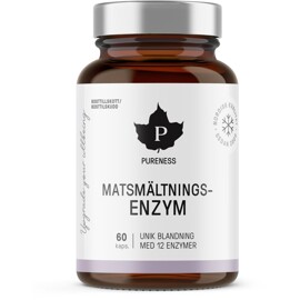 Det finnes ulike typer fordøyelsesenzymer, og Pureness sterke enzympreparat inneholder 12 nøye utvalgte enzymstammer. Teknikken vi har brukt for å lage enzympreparatet gjør det mulig for enzymene å beholde sin funksjon i et meget surt miljø og også i et meget alkalisk miljø. Bruk sammen med Pureness Betain HCl + Pepsin kapsler for ekstra effekt!