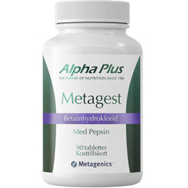 Metagest består av en blanding av betainhydroklorid og pepsin. Betainhydroklorid har lav pH-verdi. Pepsin er et enzym med en molekylmasse på 34,6 kDa, som er aktivt i et surt miljø (pH-optimum 1,5–2,0).