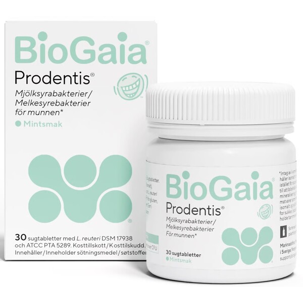 BioGaia Prodentis er et avansert probiotisk kosttilskudd for munnen* med frisk mintsmak. Inneholder to patenterte bakteriestammer av høy kvalitet som hjelper til med å balansere den orale bakteriefloraen.