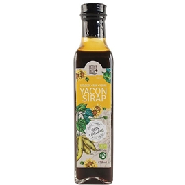 Yacon sirup, et naturlig søtningsmiddel med melassesmak og en tone av eple. Sirupen inneholder fruktooligosakkarider som ikke absorberes av kroppen, noe som gir mindre påvirkning på blodsukkeret. Yacon sirup produseres fra yaconroten fra Andesfjellene. Den er næringsrik og inneholder blant annet kalium. Sødmen kommer fra inulin, en type fiber som virker prebiotisk for tarmen. I sammenligning med vanlig sirup er den ikke like søt. Den har en mørkere, nesten litt røstet smak.