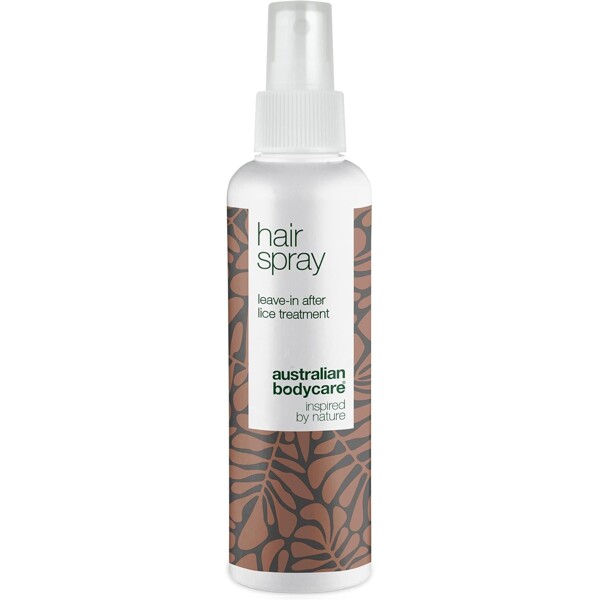Australian Bodycare Hair Spray med Tea Tree Oil fordeles i hår og hodebunn slik at nye luseangrep forebygges.