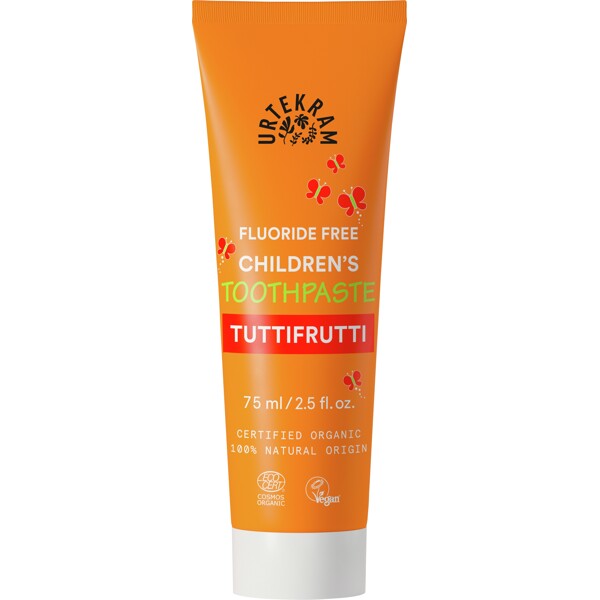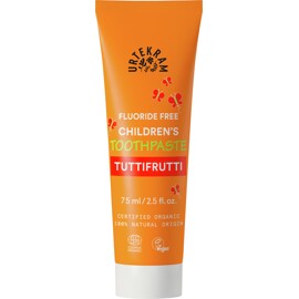 Økologisk barnetannkrem fra Urtekram med smak av tuttifrutti. Alle Urtekrams tannkremer har et innhold av aktive stoffer som styrker både tenner og tannkjøtt. Den høye andelen av aloe vera bidrar til å beskytte tannkjøttet og man har også tilsatt myrra som er kjent for sin desinfiserende effekt.