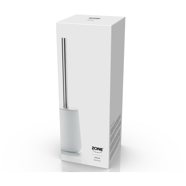 Den ensfargede toalettbørsten i steingods og stål fra den prisbelønte baderomsserien Nova utstråler luksus og spa-atmosfære med sin uimotståelige soft touch-overflate og et mykt formspråk som behager både øyet og fingrene.