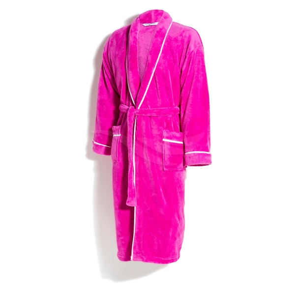 Myk og deilig badekåpe i mikrofleece. Vekt: 290 g Finnes i størrelsene L / XL og S / M. Farger: rosa, marine og hvit.