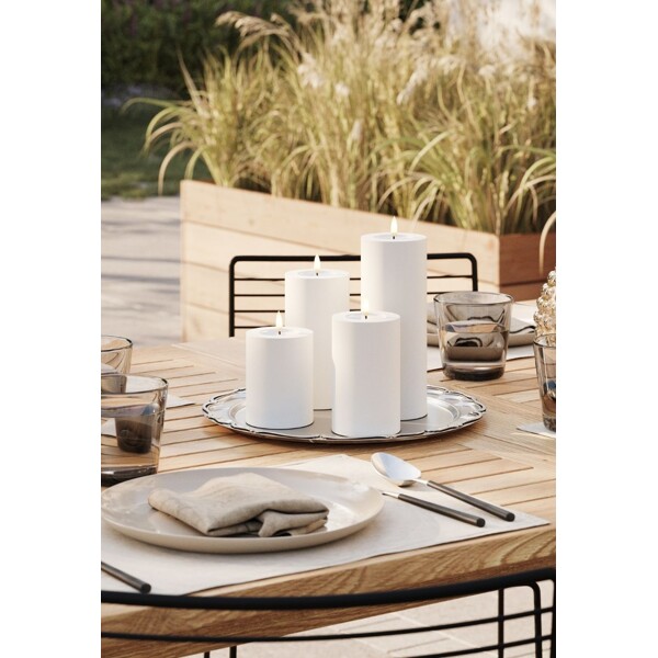 Dette LED blokklyset i hvit farge er perfekt for både innendørs- og utendørsbruk, og gir en sikker og langvarig lyskilde uten åpen flamme. Laget i holdbart HIPS-materiale, tilbyr lyset en naturlig og varm belysning som er ideell for alle typer miljøer, fra hagen til stuen din.