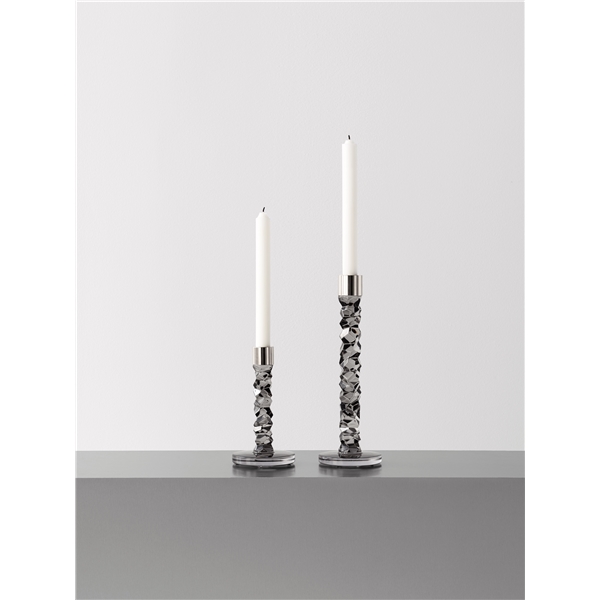 Carat-serien er basert på en moderne tolkning av tradisjonell glassskjæring som har gjort Orrefors verdenskjent. Den uregelmessige geometrien skaper vakre refleksjoner av lys i krystallglasset. Carat lysestake i antrasitt finnes i tre høyder med detaljer i rustfritt stål. Designet av Lena Bergström.