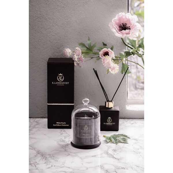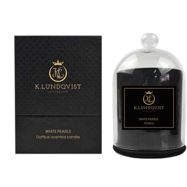 Duftlyset fra K. Lundqvist er laget av soyavoks og brenner jevnt uten å sote. En stor fin glasskuppel og en eksklusiv signaturboks følger med.