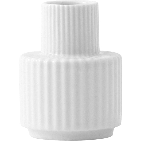 Den avsmalnende lysestaken er designet av Cecilie Toklum, som har laget lysestaken med de brede sporene nederst og de smalere sporene øverst.