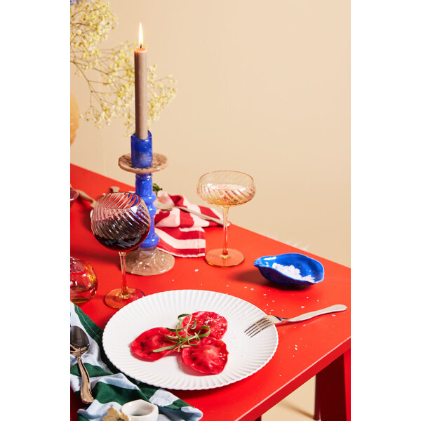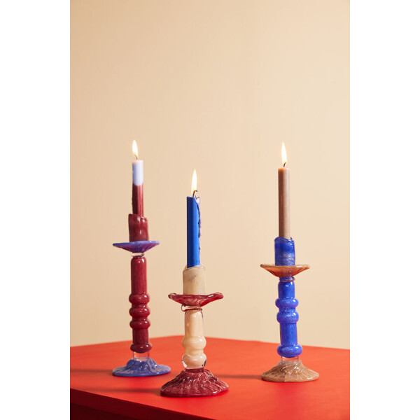 Ekstravagante, pompøse og helt vidunderlige beskriver lysestakene Lara i håndlaget glass helt perfekt. Ingen lysestake taler så godt for seg selv som Lara, som tar en selvfølgelig plass i hvert hjem. Lara lysestake er inspirert av de søyler som pryder mange av de fantastiske italienske husene, staselige og ofte med innslag av avrundede former. Foten og toppen er som en blomst og fanger stearinen som renner over lyset, lik en innebygd mansjettholder. I ulike høyder og farger kombineres de for maksimal effekt, men står like selvfølgelig ut på egen hånd. Materialet er glass og minner oss om glasskunsten fra tidligere tider. Kommer i tre størrelser og tre fargekombinasjoner. Håndlaget. Farge- og strukturforskjeller kan oppstå. Design Byon Studio. Leveres i Byon eske.