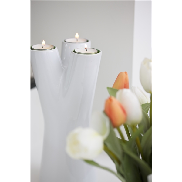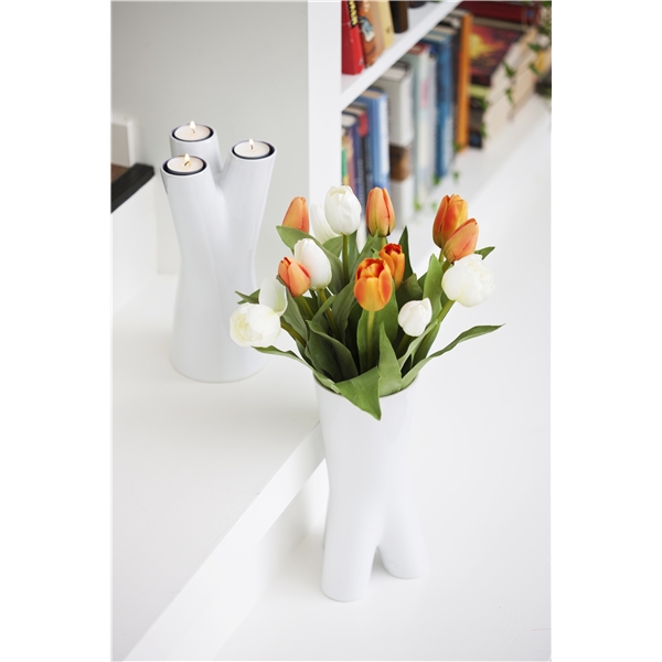 Vase med to funksjoner i steingods. Lysestake eller vase, det er opp til deg! Høyde: 250 mm. Levereres i gaveeske.