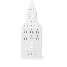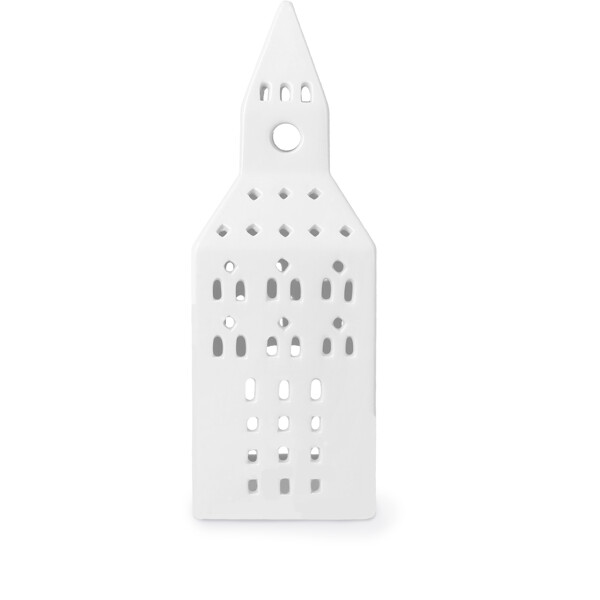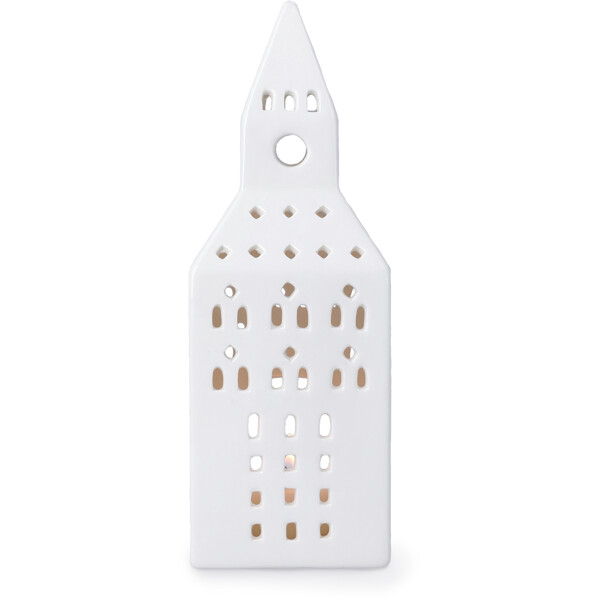 Opplev klassisk arkitektur tolket i blankglasert keramikk gjennom Kählers håndlagde designfilosofi. Med lyshuset Urbania Kirketårn hyller Kähler lysets naturlige skjønnhet og ektheten i håndlaget keramikk i et poetisk og elegant formspråk. Kirketårn-lyshuset er 20 cm høyt og er, som resten av Kählers populære Urbania-serie av ikoniske lyshus, designet av Mette Bache og Barbara Bendix Becker. Urbania Kirketårn er formet av tradisjon og omfavner vakkert den varme og autentiske atmosfæren som finnes i kirketårn spredt over hele landet. Og med hvert vindu nøye utskåret for hånd får du alltid en stilfull og koselig silhuett, der det flakkende skinnet fra telyset reflekteres i den kritthvite keramikken i Urbania-lyshuset og skaper lekne samlinger av lys og skygge rundt det.