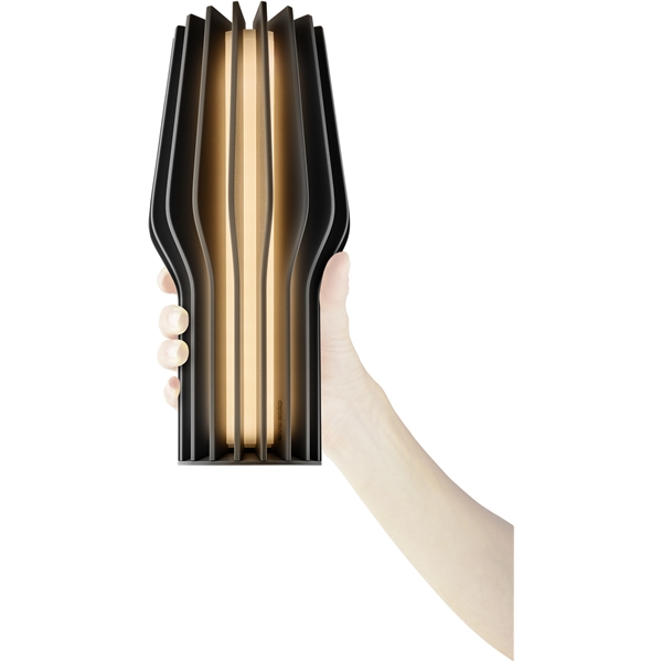 Skap stemning med koselig og dempet belysning - både inne og ute. Den allsidige og trådløse bordlampen kan enkelt flyttes fra soverommet til terrassen og har tre forskjellige lysnivåer, slik at lysstyrken kan justeres etter behov. Lampen har et integrert batteri som enkelt kan lades i den medfølgende basen og kan gi opptil 90 timers brenntid på en enkelt lading. Funksjonaliteten matches av lampens skulpturelle form, som skaper et blikkfang både i hjemmet og i hagen.