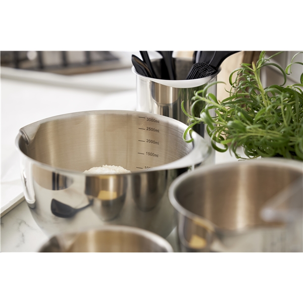 Et stilig og eksklusivt stålsett av den populære Margrethe-skålen. Settet består av tre skåler på 1,5 + 2 + 3 liter. Skålene er laget av 18/8 stål med sateng finish på innsiden og blank finish på utsiden. Mål på innsiden. Tåler oppvaskmaskin og fryser, men kan ikke brukes i mikrobølgeovn.
