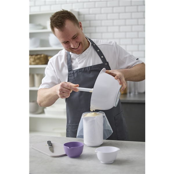 Rostis klassiske miksekanne er et must i alle kjøkken – perfekt for både tilberedning, servering og oppbevaring. Miksekannen er designet for å matche Margrethe-bollen og finnes i de samme fargene. Kannen har et praktisk håndtak og helletut. Volumet er 1,25 liter og er like praktisk når du skal piske kremfløte som å servere drikke fra.