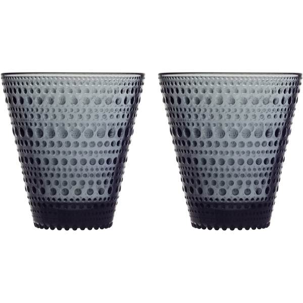 Design: Oiva Toikka &bull: 1964I 2010 relanserte Iittala deler av den populære serien Kastehelmi, som betyr duggdråpe, en klassiker fra 1964, designet av Oiva Toikka. Relanseringen er en del av feiringen av Oiva Toikkas 50 år som virksom hos Iittala. Han sies å være en av dem mest briljante moderne designere av finsk glasskunst. Hans verk kan beskrives på mange måter – overfølsomme, overdådige, originale, fantastiske og svært underholdende. Selv i dag, ser det ut som han er på en kontinuerlig reise som ofte tar han til ennå ikke identifiserte områder.Produsert i presset glass.Kastehelmi Drikkeglass 30 cl 2 stk/pakke