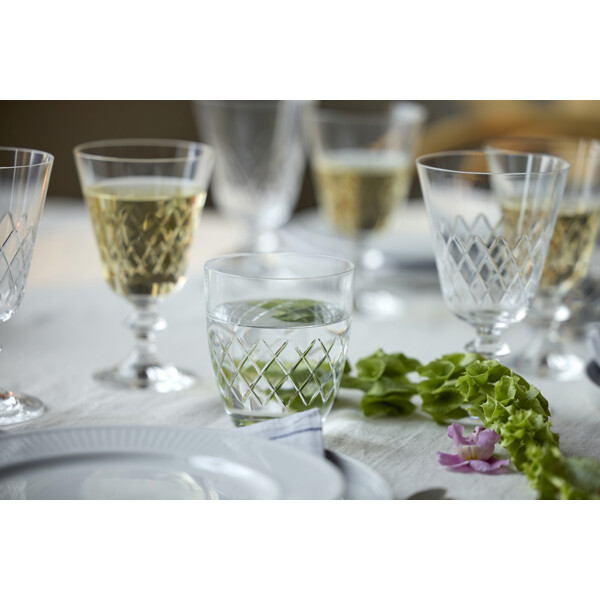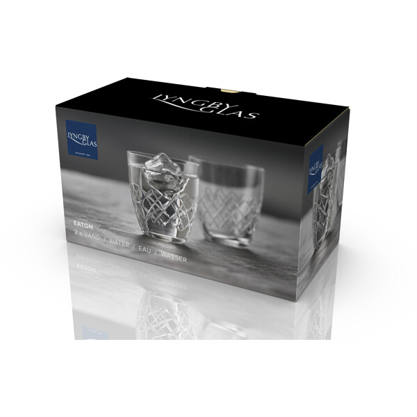 Eaton vannglass, 30 cl, tolker det klassiske diamantformede mønsteret fra det ikoniske Eaton-glasset, som Lyngby Glas skapte på 1960-tallet. Designets tidløse estetikk forener klassisk sjarm med moderne stil og tilfører en helt unik stemning ved bordet. Laget i krystallglass tilbyr Eaton enestående klarhet og holdbarhet, noe som gjør glasset til en glede å bruke – enten det er for en koselig hverdagsmiddag eller en festlig kveld med venner. Eaton produseres i Europa med stor presisjon gjennom en avansert produksjonsprosess som inkluderer maskinsliping og polering. Resultatet er høy klarhet og en eksklusiv finish som fremhever glassets enkle eleganse.