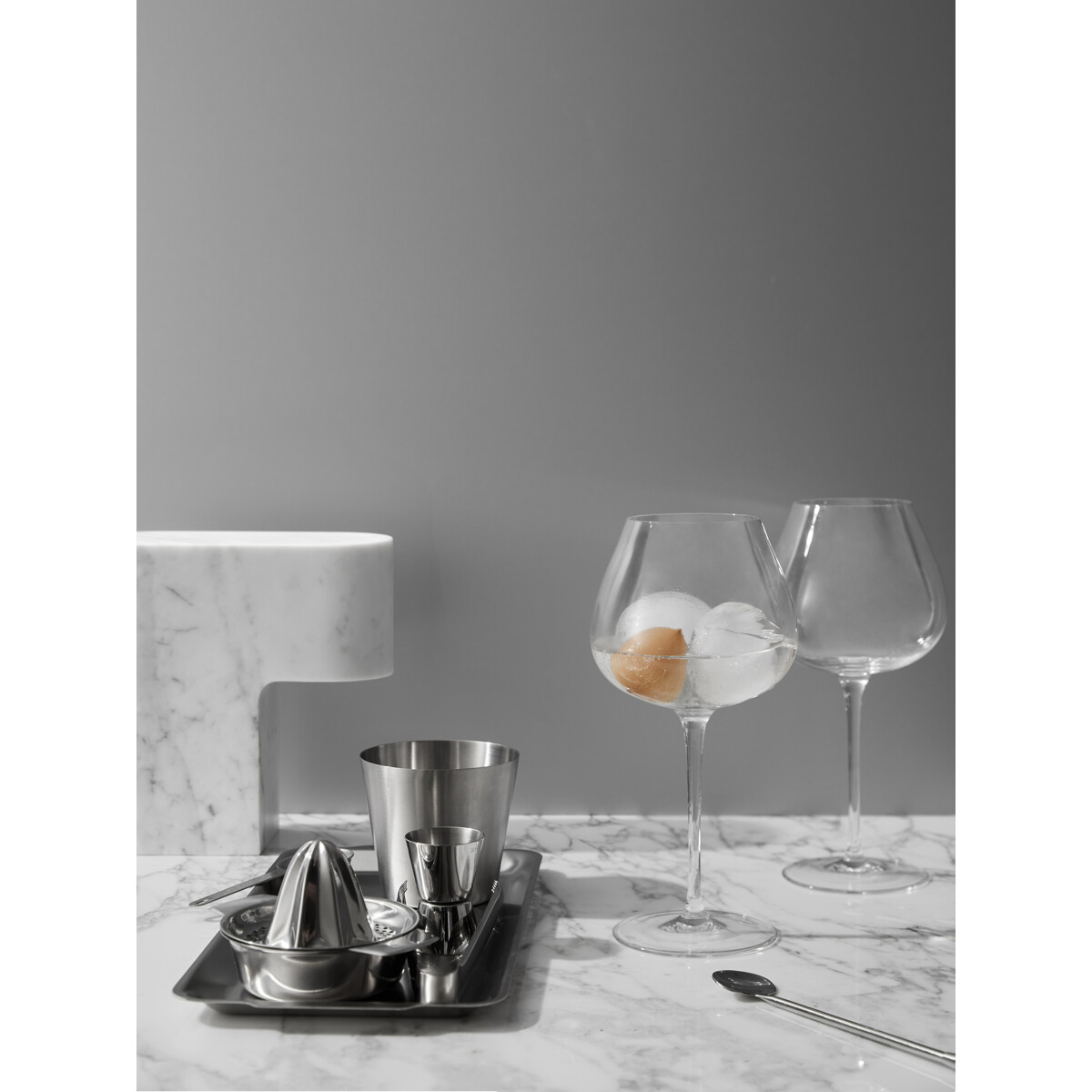 Aroma Copa Gin fra Orrefors er designet og utviklet i samarbeid med Jens Josefsson, Sveriges fremste gin-kjenner. Det ballongformede glasset forbedrer smaksopplevelsen, gir god plass til kreativ garnityr, holder drikken kald lenger og tilbyr en elegant presentasjon – egenskaper som har gjort denne serveringsstilen populær på barer og restauranter over hele verden.