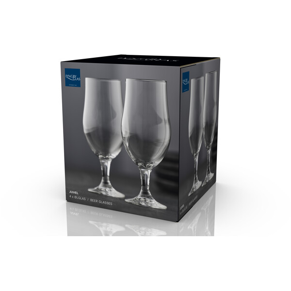 4 stk Ølglass Juvel 49 cl. Den høye stetten gir glasset et vakkert og stilrent uttrykk, og med sin tidløse design fremstår det som et klassisk glass. Glassene egner seg godt som ølglass og passer for alle typer borddekkinger.