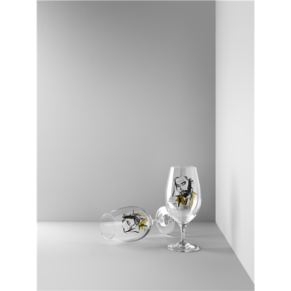 Design: Sara WoodrowTøffe ølglass i frekt motiv.”Jeg har også hentet inspirasjon fra moteverden. Jeg vet ikke om du noensinne har opplevd at personen du elsker reiser bort? Min mann reiser en hel del og designene på disse glassene fødtes ut i fra følelsen jeg har når han er borte. Når personen man elsker er på andre siden av jorden og det føles som om man knuses av savnet og dagene går bare tregere og tregere. Men så ses man igjen og ingen følelse i verden er bedre."- Sara Woodrow, kunstnerinne.