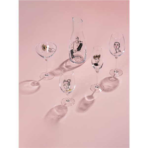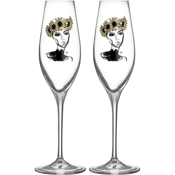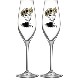 Champagneglass fra den populær og ungdommelig glasserie All About You fra Kosta Boda. Serien er designet av kunstneren Sara Woodrow, der illusjonene på brillene er inspirert av moteverdenen. Champagneglassene kommer i en 2-pakning.