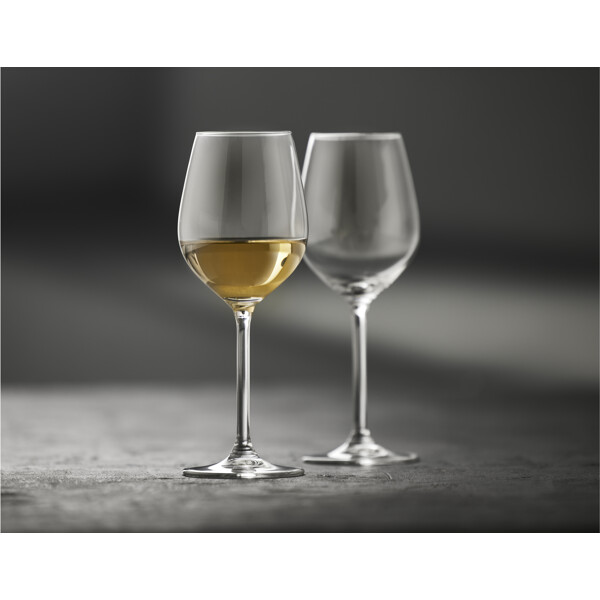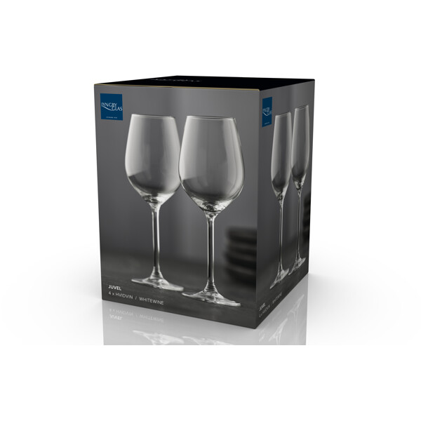 Hvitvinsglass Juvel 38 cl 4 stk. Den elegante stetten gir et meget elegant glass, som med sitt tidløse design fremstår som et klassisk glass som kan brukes i alle typer borddekkinger.