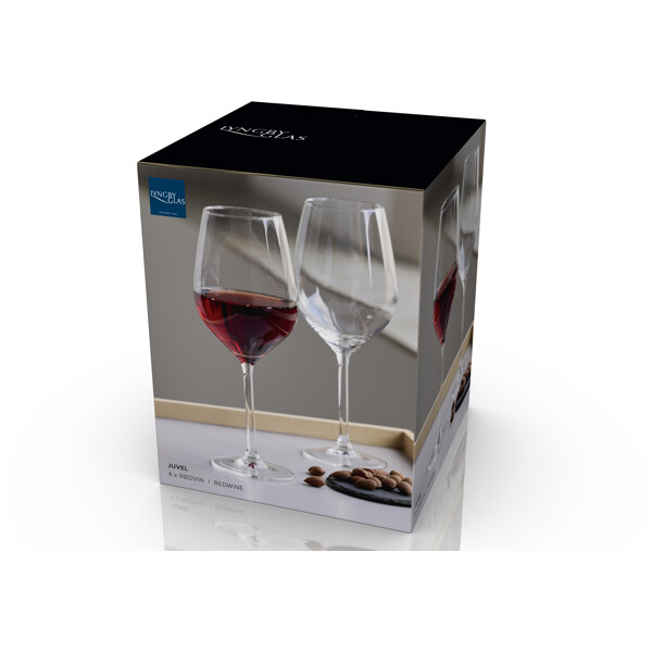 4 stk Rødvinsglass Juvel 50 cl. Den elegante stetten gir et meget elegant glass, som med sin tidløse design fremstår som et klassisk glass som kan brukes i alle typer borddekkinger. 23 cm.