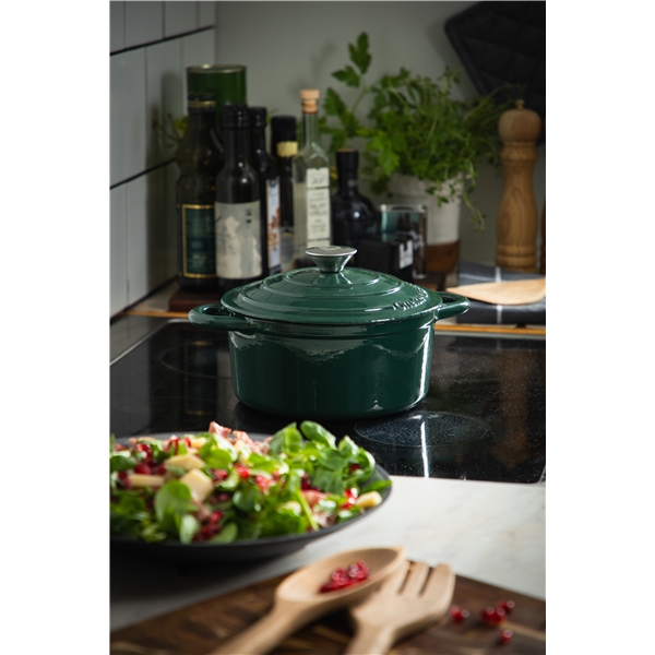 Emaljert støpejernsgryte. Utside med matt sort finish. En stor gryte som passer både for langkok og hverdagsmat. Fungerer på alle typer komfyrer og plater.Størrelse: 2,8 Liter.Material: Støpejern.