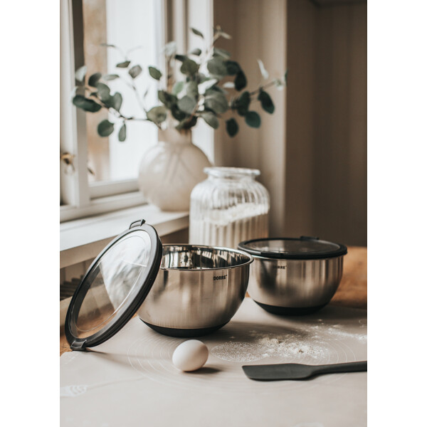 Belki bollesett 2-pack i rustfritt stål tilbyr to romslige volumer for baking, matlaging og forberedelser. Med 2,5 og 3,5 liter får du fleksible boller som tåler daglig bruk. Den lette men stabile konstruksjonen gir godt grep og holdbarhet i alle kjøkkenets oppgaver.