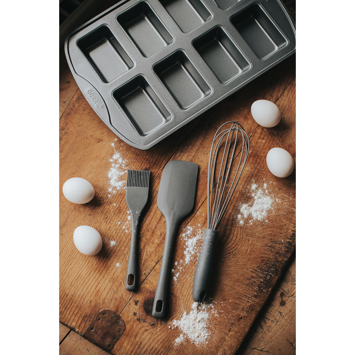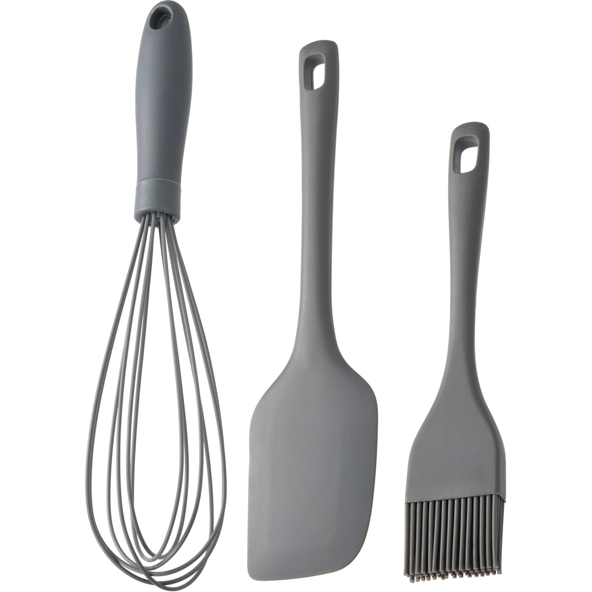 Cookie verktøysett i silikon består av visp (39 cm), børste (20 cm) og slikkepott (27 cm). Silikonet tåler varme, beskytter belagte panner og gir myke, smidige bevegelser. Et komplett sett for baking, matlaging og glasering – praktisk, holdbart og lett å rengjøre.
