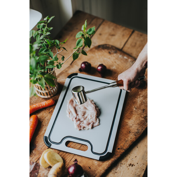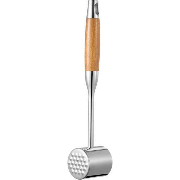 Robust kjøttbanker med trehåndtak som gir et behagelig grep. Perfekt for å mørne kjøtt og jevne ut kjøttstykker før tilberedning. Den slitesterke konstruksjonen kombinerer funksjon med stil og blir et uunnværlig redskap på kjøkkenet.