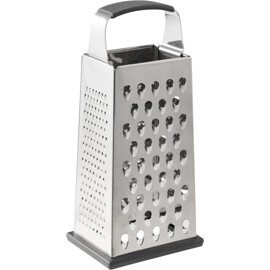 Praktisk firkantet rivjern med ulike riveflater for ost, grønnsaker og rotfrukter. Utstyrt med gummiføtter som gir stabilitet på benken og et komfortabelt håndtak for sikkert grep. En slitesterk klassiker på kjøkkenet som gjør matlagingen enkel.