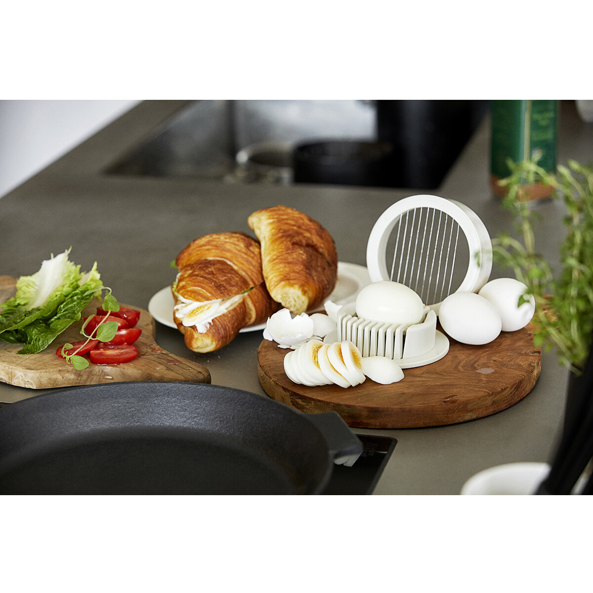 Enkel og elegant eggdeler fra Zone Denmark som garantert øker din lyst på smørbrød. Den er ikke bare et effektivt redskap som kan dele egget både på langs og på tvers. Når knivene har skåret egget i fine skiver, forvandles eggdeleren til en fin liten serveringsskål som dekorerer lunsjbordet.