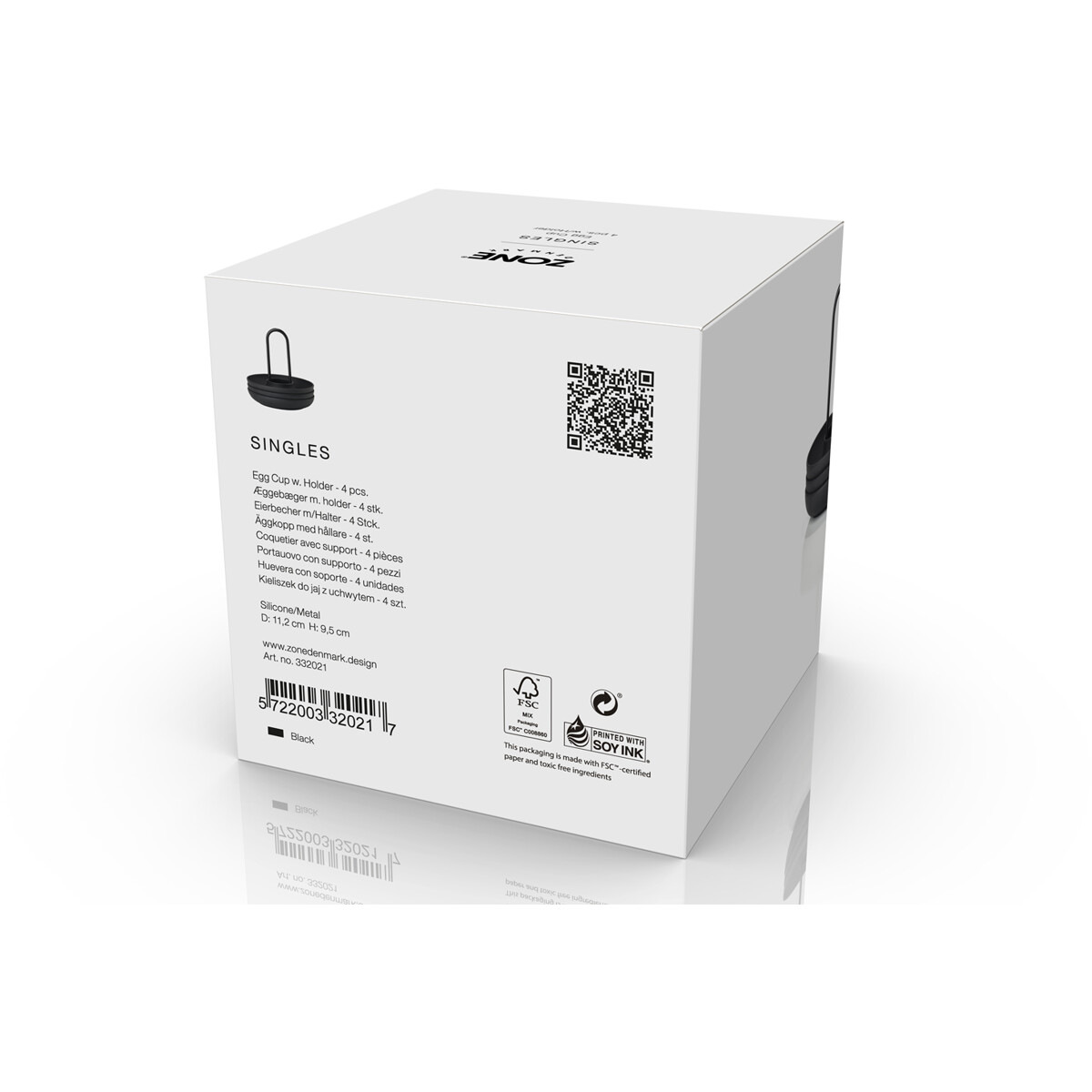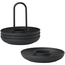 De fire eggeglassene i holder fra Singles kan settes på bordet med bare én hånd. Og den buede kanten fanger både salt, eggeskall og gjestenes oppmerksomhet. Slik at du kan spise brunch med stil – for eksempel i selskap med gode venner.