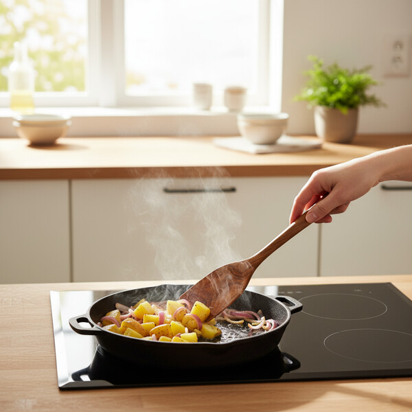 Legg til naturlig eleganse og i matlagingen din! Denne brede, flate stekespaden er laget av holdbart teaktre og er et uunnværlig verktøy i ethvert kjøkken. Dens robuste design gjør den ideell for å woke, blande og vende ulike retter uten å ripe opp kjøkkenutstyret ditt. Størrelse: Cirka 35 cm lang. Materiale: 100 % teaktre fra Thailand (ingen lakk eller farge)