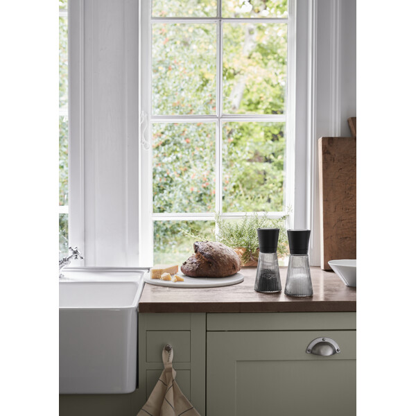 Med Grand Cru Nouveau-møllen i røkt glass får du en funksjonell, moderne og elegant nytolkning av den ikoniske Grand Cru-serien. De fire ikoniske Grand Cru-fløytene har nå blitt til 50 fløyter hvor de mange fløytene skaper et levende utseende og et smart optisk fargespill når lyset reflekteres i glasset. I tillegg til å være dekorative er rillene også funksjonelle og gir et godt grep for både store og små hender. Grand Cru Nouveau-kvernen er 17 cm høy og med geometrisk eleganse i stil, tekstur og farge skaper det røykfargede glasset og den svarte toppen et unikt utseende som fremhever Grand Cru-designet.