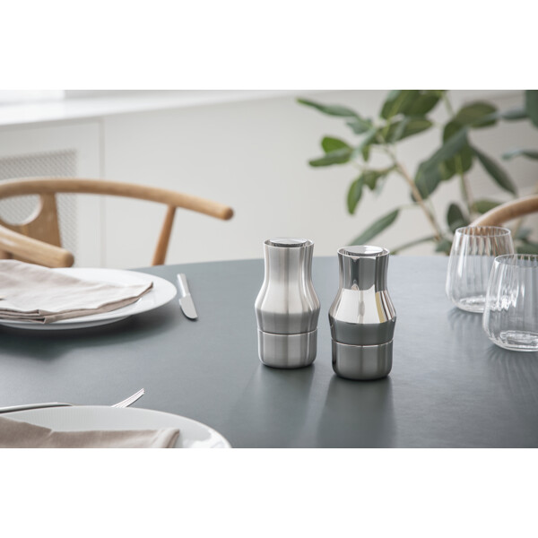 De vakre, minimalistiske kvernene i høyglanspolert rustfritt stål/matt stål bidrar til en elegant helhet på bordet. Den keramiske CrushGrind®-mekanismen er plassert på toppen av kvernen, og takket være denne gjennomtenkte designen faller ingen krydder på bordet når kvernen settes ned. Plasseringen av kvernmekanismen gir flere fordeler: tyngdekraften leder naturlig krydderne inn i kvernen og gir en mer enhetlig maling. Samtidig ligger kvernen godt i hånden, noe som gir et behagelig grep og bedre kontroll. Med fire innstillinger fra fin til grov er det også enkelt å justere krydringen etter ulike preferanser.