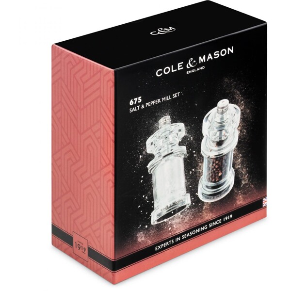 I 1975 lanserte Cole and Mason verdens første akrylkvern, vår ikoniske 505. Oppfunnet av David Cowan, sønn av grunnleggeren Julian Cowan, har den vist seg å være en populær og tidløs klassiker som vi fortsatt har i vårt sortiment i dag. De nye 605- og 675-kvernene henter inspirasjon fra sine ikoniske motstykker, mens kantens avskjæring, den nye knoppen og tillegget av kragen i rustfritt stål gir en moderne og førsteklasses følelse. Alle pepperkvernene er utstyrt med Cole og Mason Precision karbonstålmekanisme og dekkes av vår livstidsgaranti. Saltkvernene er alle utstyrt med vår rustbeskyttende keramiske mekanisme av høy kvalitet.