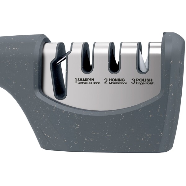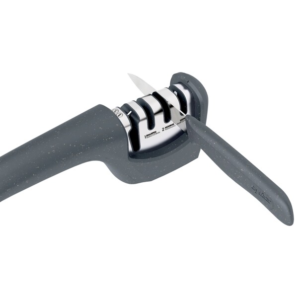 Vekk raskt sløve blader til liv igjen med bare noen få drag gjennom de forskjellige dedikerte slipsporene. Med 4 forskjellige slisser: 1. for sakser og taggete blader, 2. sliping, 3. for bryning og 4. for polering av rette blader.