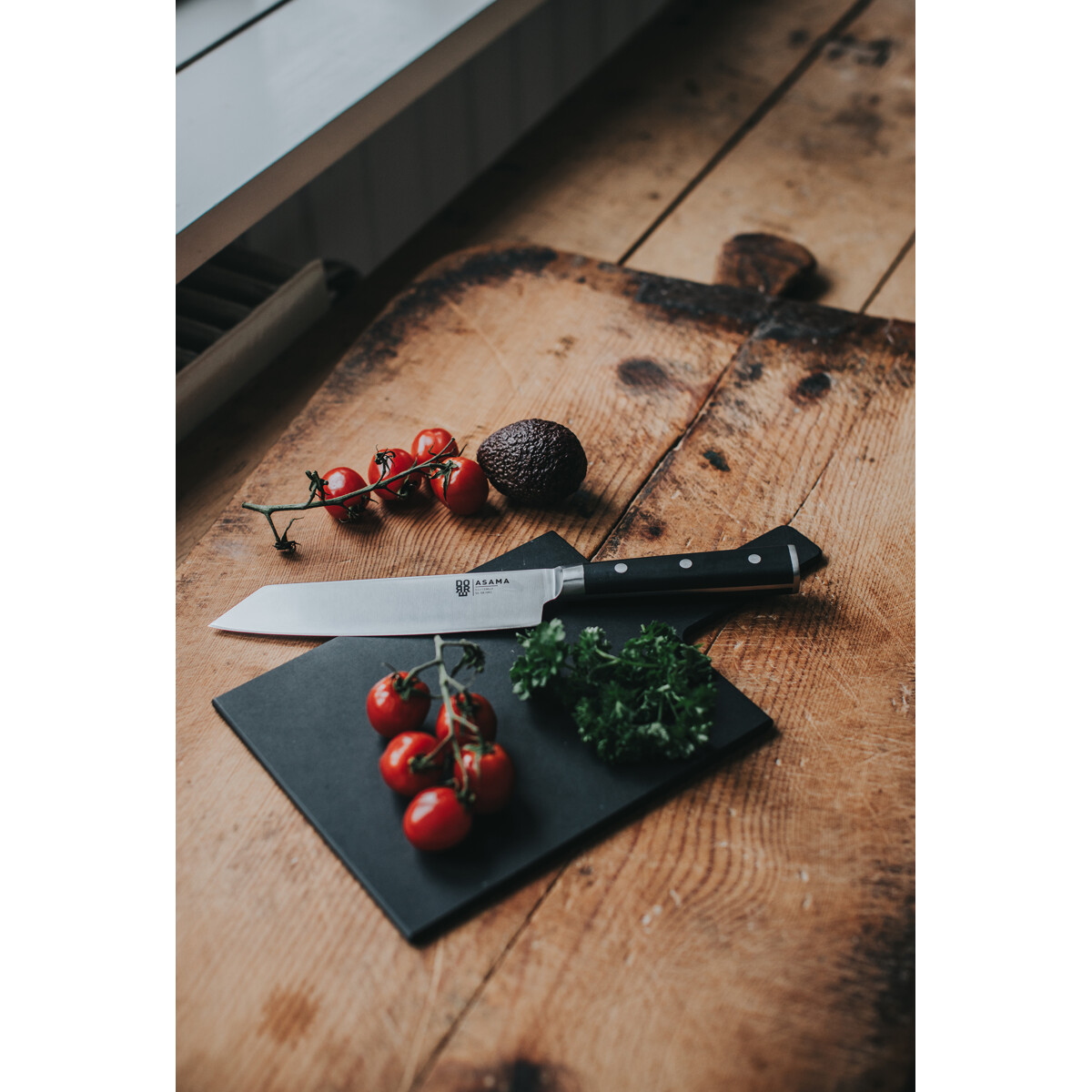 Asama Kiritsukekniv gir en skarp, allsidig egg for både grønnsaker og fisk. Med 19 cm blad og svart håndtak får du god balanse og kontroll. En profesjonelt inspirert kniv som kombinerer japansk form med Dorres funksjonelle design for presisjonsarbeid på kjøkkenet.