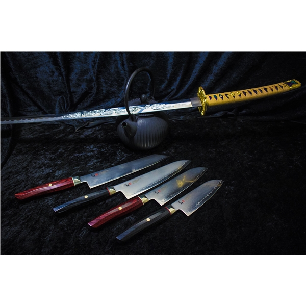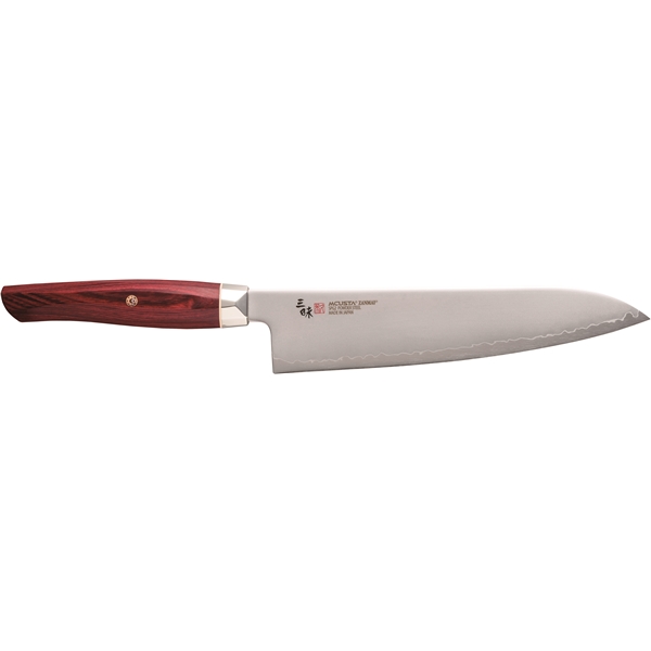 Mcusta Zanmai Revolution er en serie fantastiske kniver med et svært tyng blad av tre lager stål med et kjernestål av SPG2 som er et japansk pulverstål kjent for utmerket motstandskraft mot slitasje og korrosjon. Hardhetsnivået er 61HRC med en fantastisk holdbar skarphet. Den myke linjen mellom sidenes støttestål og kjernestålet gir et utrolig vakkert blad med design som minner om japanske sverd. Revolution har et ergonomisk mykt, bøyd håndtak til forskjell fra mange andre modeller fra japanske Zanmai. Det vakkert designede håndtaket ligger perfekt i hånden og gir et fast og stabilt grep. Gyuto er en smidig kokkekniv som passer både amatørkokken så vel som proffen. Kniven finnes med ulike farger på håndtaket.