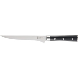Elegant fileteringskniv i rustfritt stål med perfekt balanse og sylskarpt blad. Den smale, fleksible bladformen gjør kniven ideell for å filetere fisk, skjære kjøtt og få tynne, presise snitt. Del av Dorres eksklusive Asama-serie.
