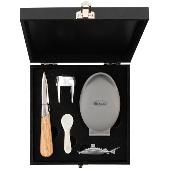 Gavesett med åpner for en flaske bobler, kaviarskje, kaviaråpner, østerskniv og silikonholder for østers. Trå inn i en verden av ultimat sofistikering med det eksklusive gavesettet fra Laguiole Style de Vie. En symfoni av rimelig luksus og eleganse. Hvert objekt i dette settet er nøye utvalgt for å møte de høyeste kravene til smak og stil. Perfekt for deg som verdsetter de finere tingene i livet. Fra å enkelt åpne en flaske champagne, cava eller prosecco til den delikate serveringen av kaviar med den vakre skjeen laget av skjell. Og med kaviarboksåpneren åpner du disse luksuriøse delikatessene med letthet. Østerskniven tilbyr presisjon, mens silikonholderen gir ekstra grep. Med dette settet kan du forvandle enhver anledning til en hyllest av luksus!
